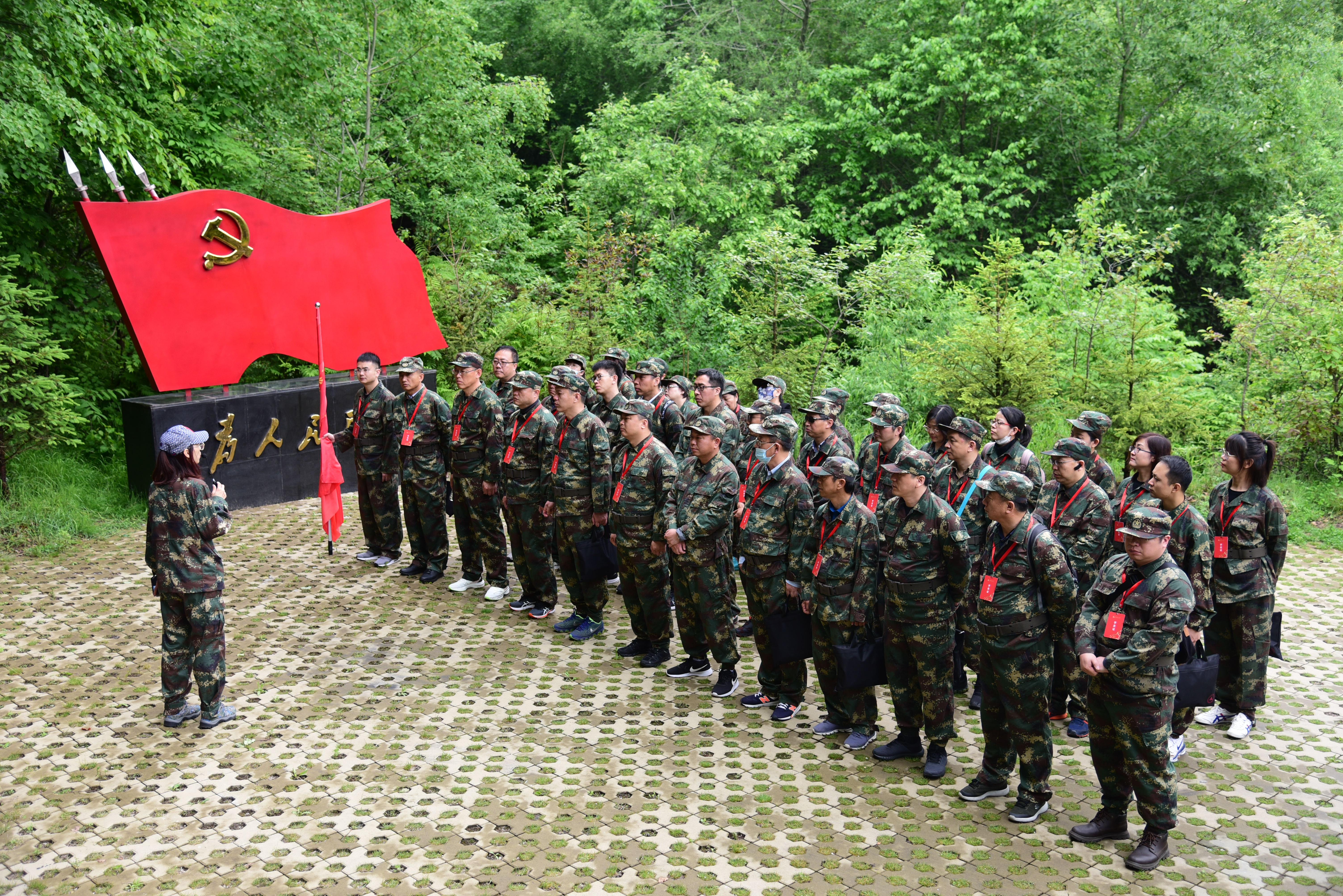 6月4日下午,在开班仪式后,全体学员在杨靖宇干部学院宣誓广场举行了“重走抗联路”出征仪式。面对鲜红的党旗,学院党委书记李善兴带领全体学员庄严宣誓,重温入党誓词。通化市委党校教师为培训班授旗并宣布出征命令。接着,学员们在靖宇陵园拜谒了杨靖宇将军并参观了东北抗联纪念馆。通过参观学习,学员们更深刻地领略了杨靖宇将军英勇无畏的革命精神和东北抗联14年浴血奋战的光辉历程。