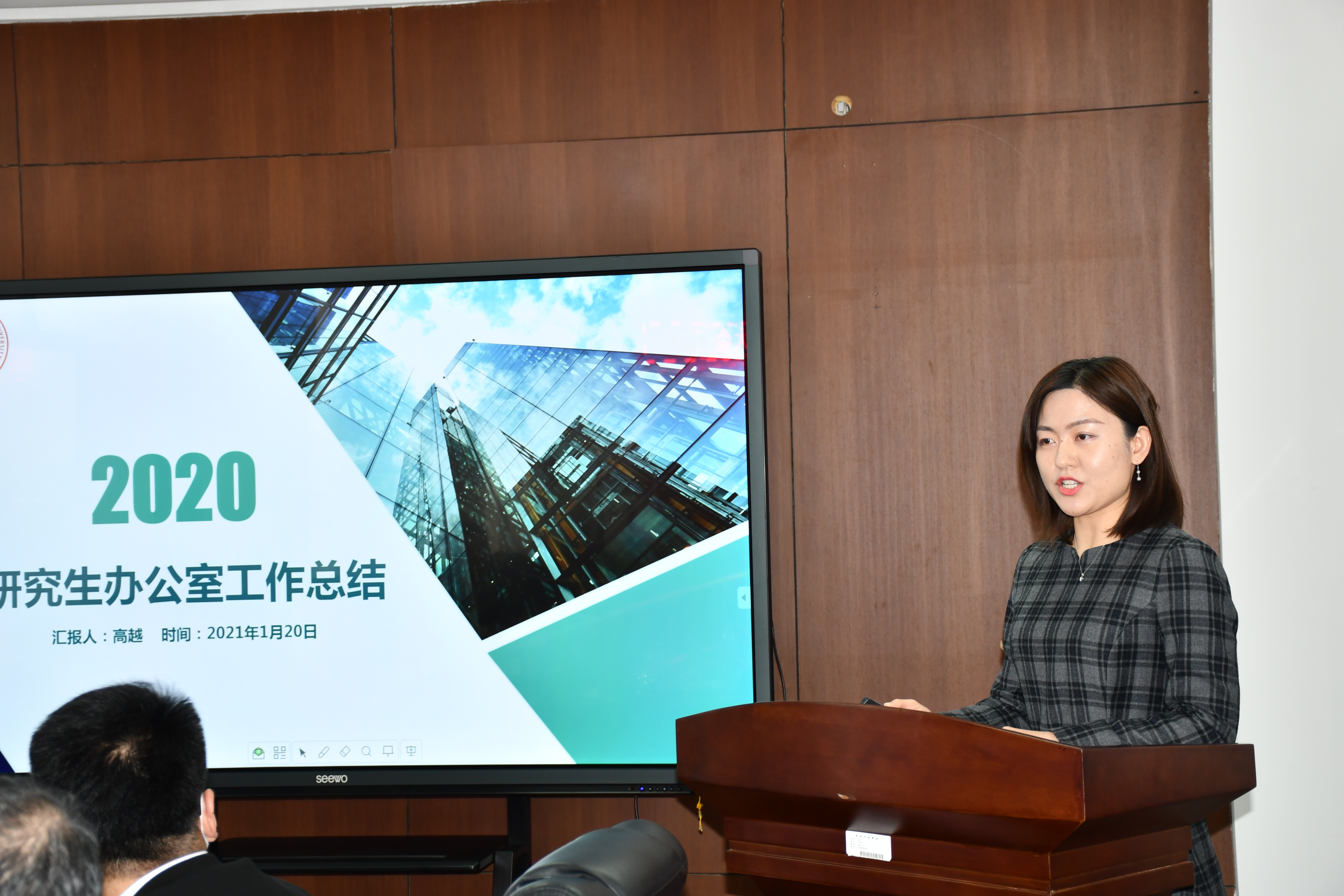 党委办公室主任谢成洪、行政综合办公室主任杨宁、科研办公室主任麻吉河、研究生办公室主任高越、教务办公室负责人唐斌、学生工作办公室主任韩冰,分别围绕岗位职责履行情况和工作任务完成情况对2020年度工作、2021年计划进行了总结和汇报。