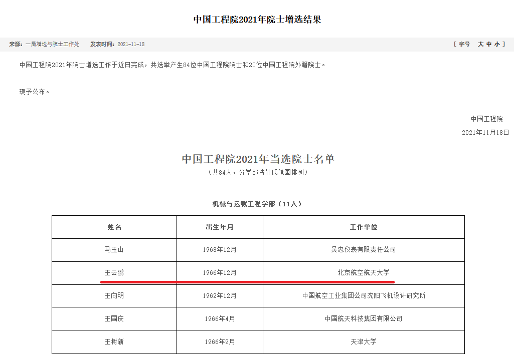 11月18日,中国科学院、中国工程院2021年新当选院士结果公布,BT之家