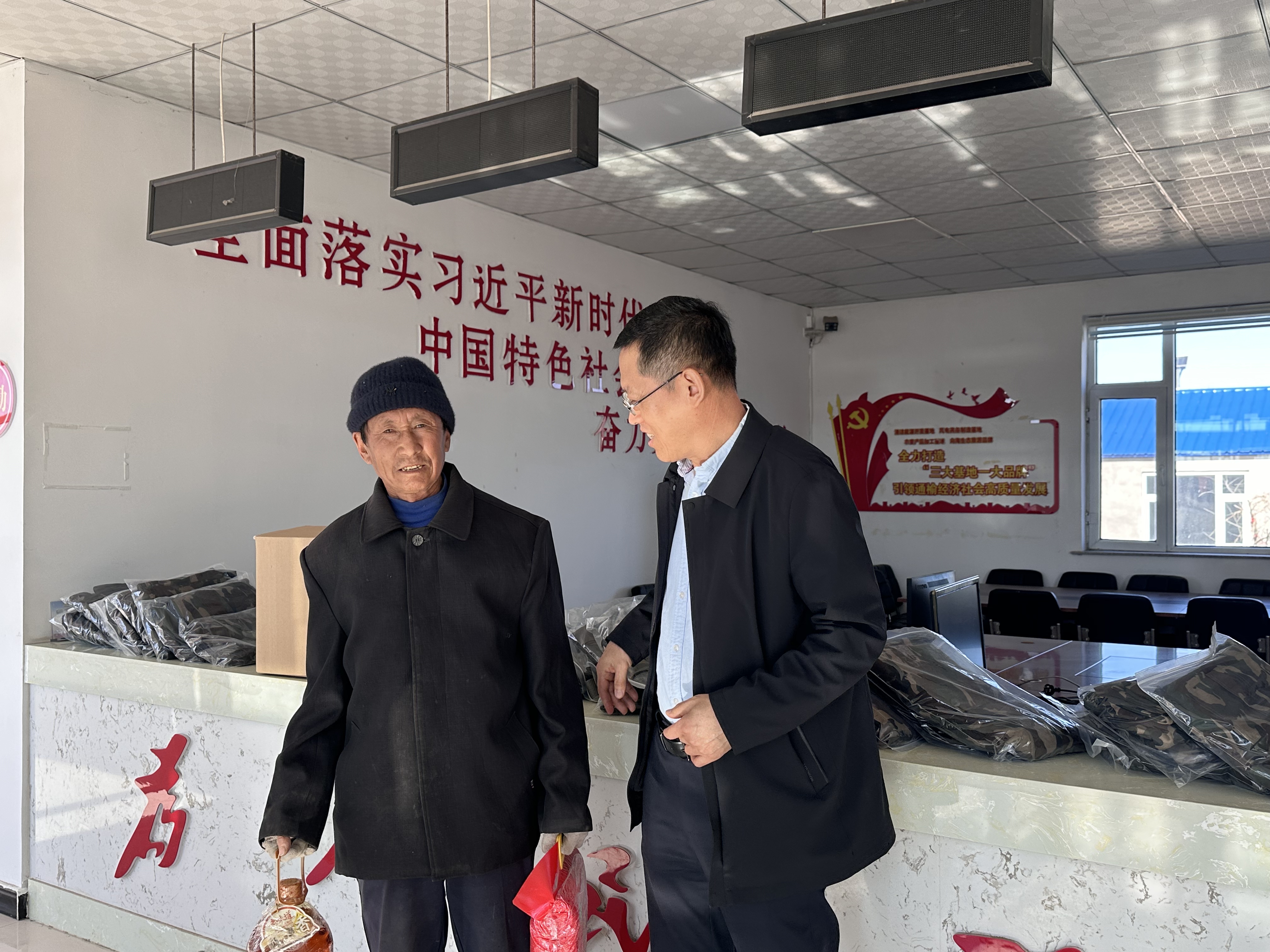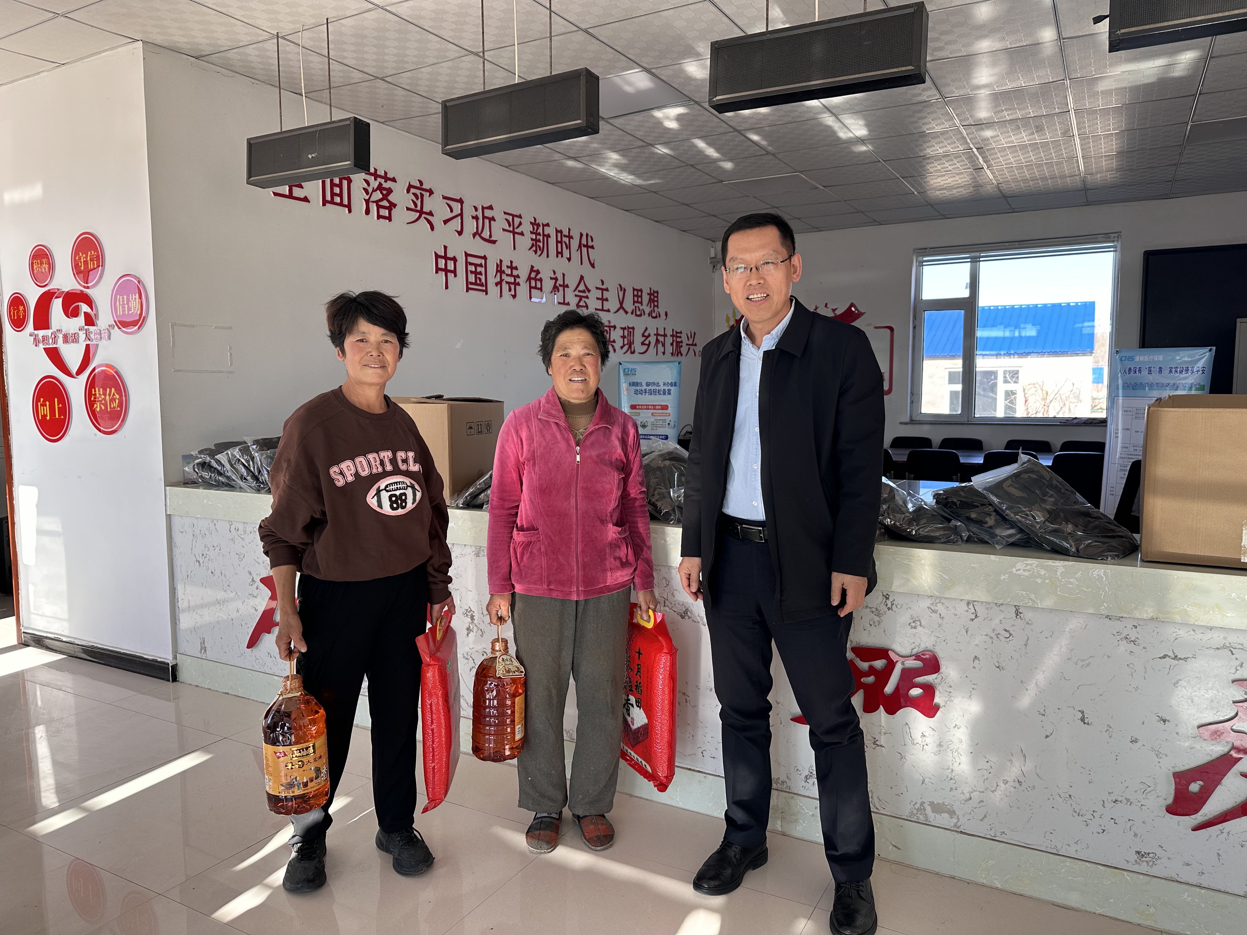 前期参与通榆县乡村振兴的工作情况以及学院发挥专业优势助力通榆县交通局制定“通榆县综合交通运输规划和制定“客货邮融合发展”解决方案的工作。学院党委书记李善兴就乡村振兴在中国式现代化中的体现和加强党建工作对村基层工作的重要作用方面与村委会成员做了工作交流。之后,李善兴书记代表学院向村民捐赠了军训服装,向村里90岁以上年龄老人的家庭捐赠了粮油。此次活动加深了学院与新丰村的沟通交流,BT之家